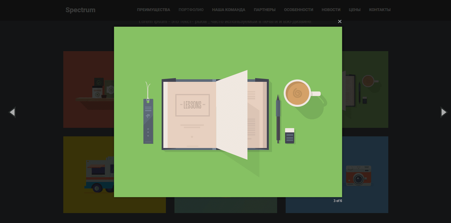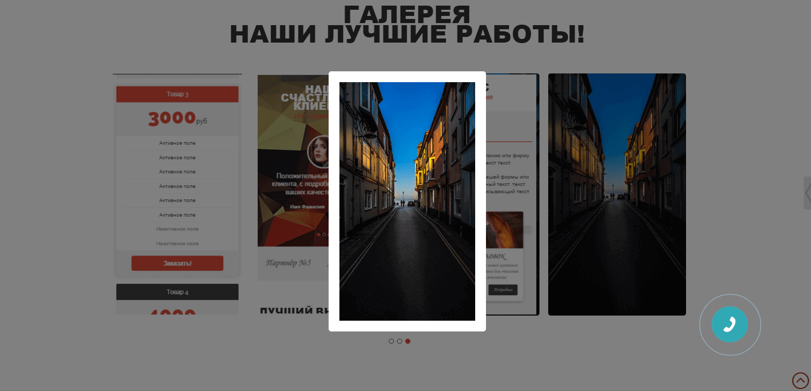 В шаблоне есть возможность увеличивать картинки в галерее и блоках информации.