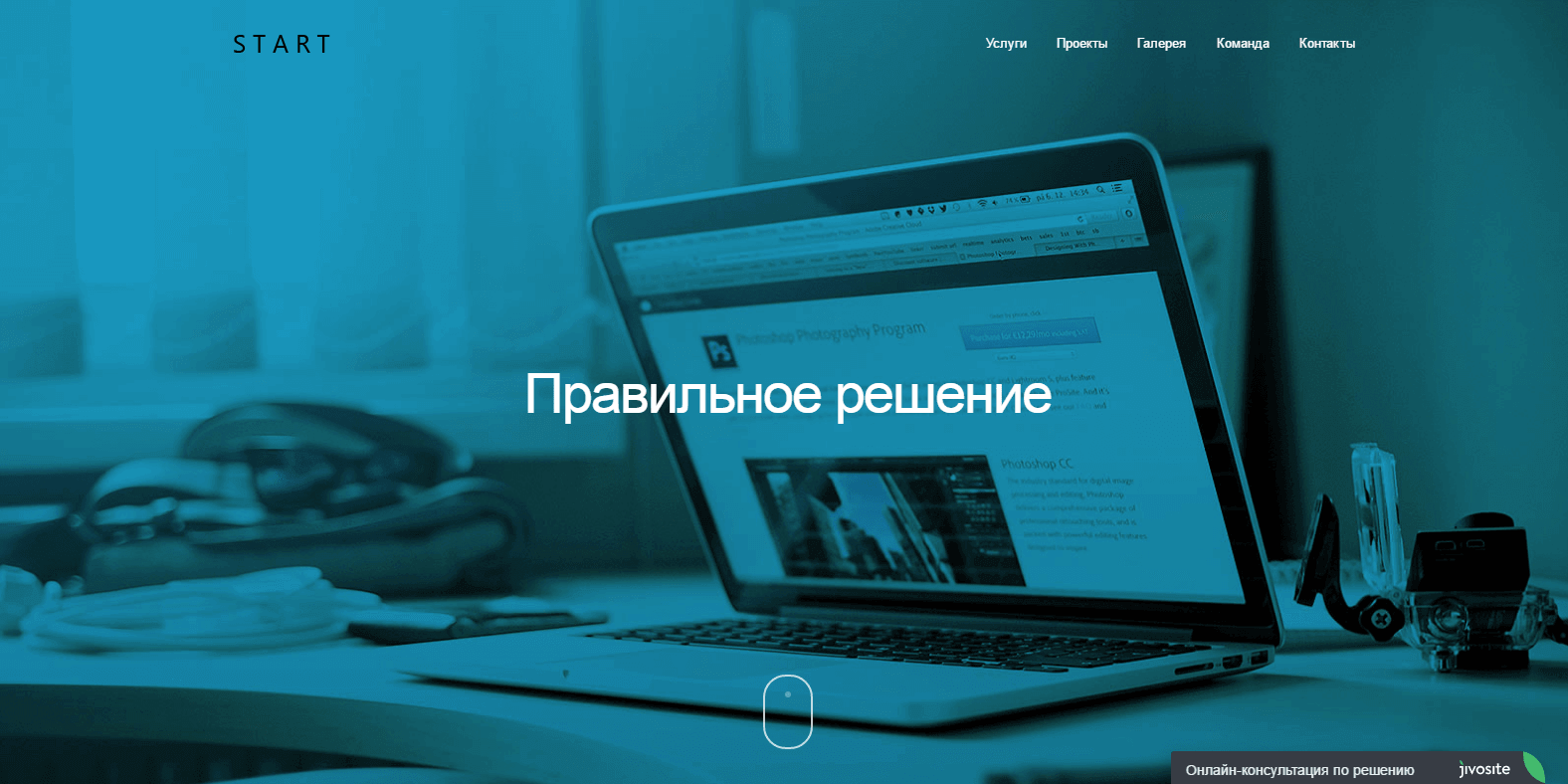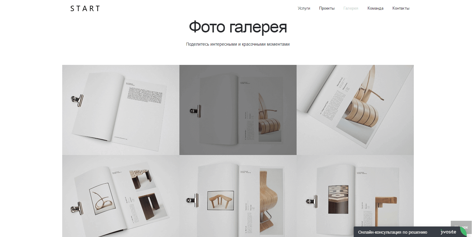 Минималистичный анимированный лендинг с возможностью создания галереи.