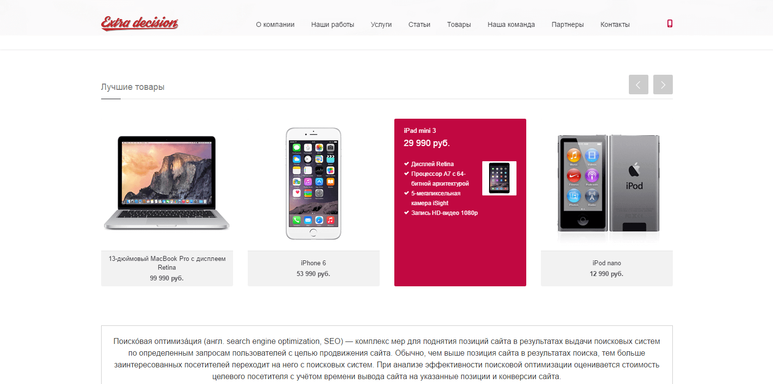 Не имеет слайдера, плавающей шапки.