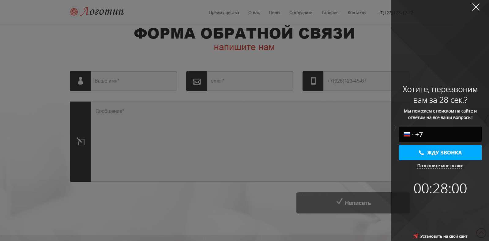 Подключен сервис «Позвоним», который отображает форму «Жду звонка».