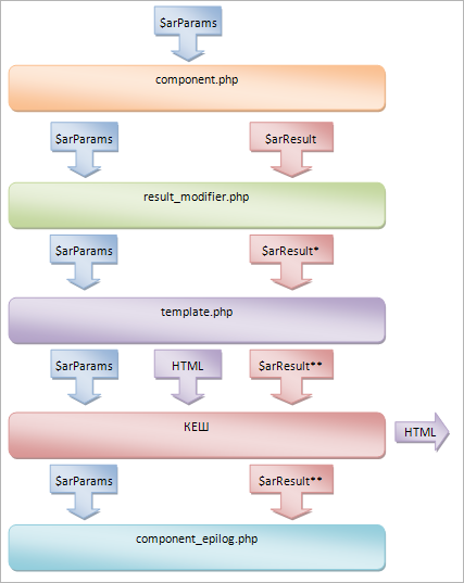 Схема работы компонента с файлами result_modifier.php и component_epilog.php: