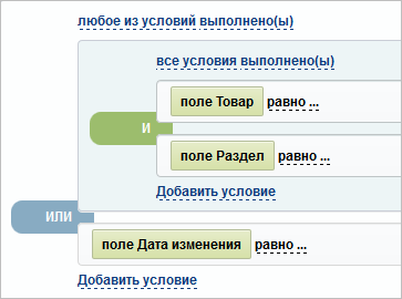 Примечание: вы можете добавить группу условий, которая будет обрабатываться как одна логическая единица, внутри которой также можно использовать логические операторы: