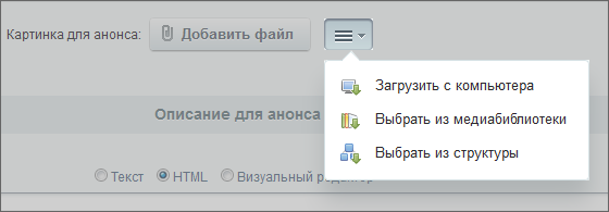 Все формы работающие с контентом позволяют загрузить изображения: