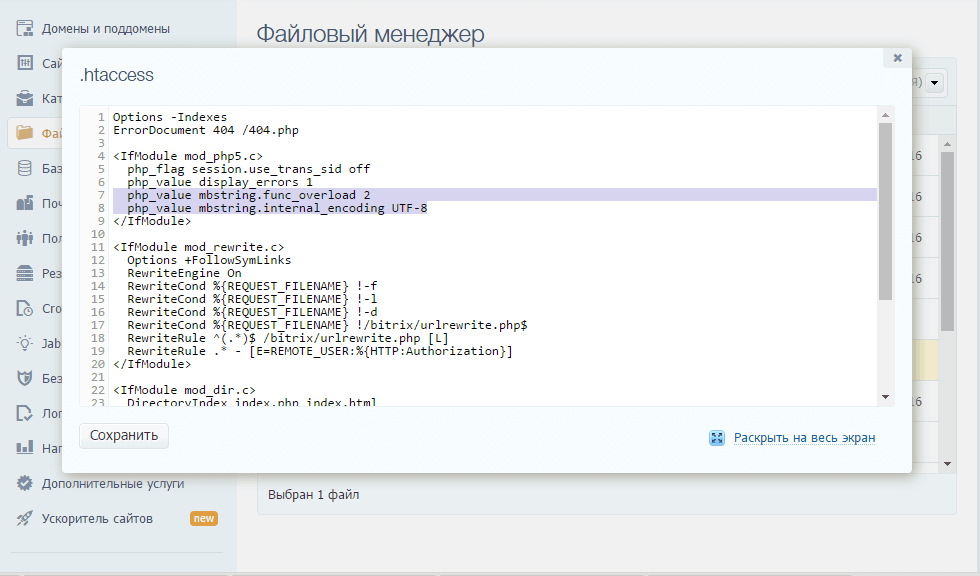 Для установки системы управления сайтом 1С-Битрикс (на примере хостинга Timeweb) необходимо выполнить следующие действия: