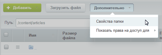 Для настройки прав доступа к текущей директории (например, к корневой папке) нужно воспользоваться кнопкой Свойства папки, расположенной на контекстной панели:
