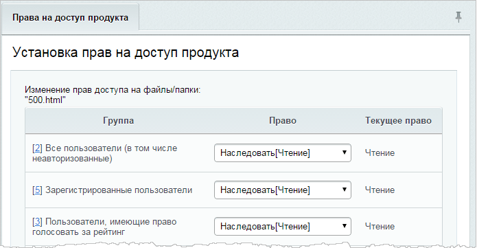 Если установлено право доступа Наследовать […], то реальное право доступа определяется полем Все группы, для которых уровень доступа Наследовать. Иными словами, по умолчанию для всех групп установлено только право на чтение (кроме администратора сайта, который может все).
