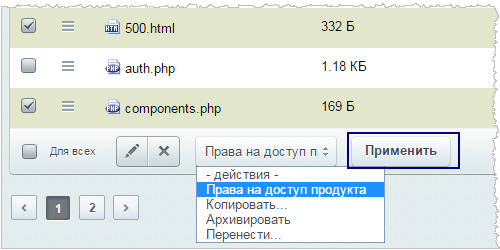 - выбрать действие "Права на доступ продукта" на панели групповых операций и нажать кнопку Применить: