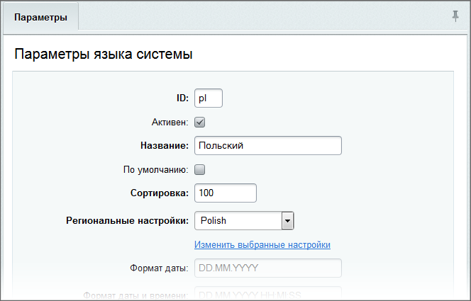 После создания региональной настройки её используют при создании языка интерфейса и при создании сайта.