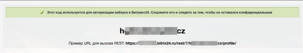 После создания получаем код вебхука, который можно применять в наших Rest-запросах: