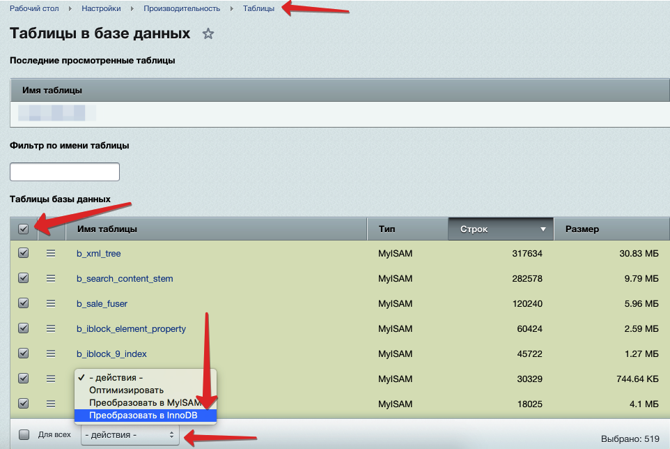 Внимание! Данный процесс может вызвать высокую нагрузку на сервер, необходимо выполнять данную процедуру при меньшей нагрузке на сайт. Если ваш объем баз данных велик, лучше делать преобразование постепенно.